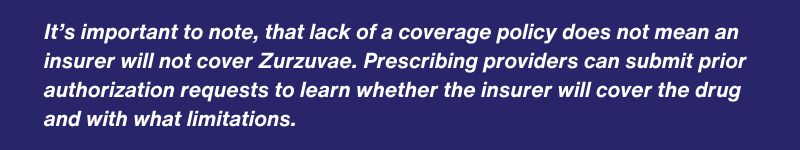 - Insurance companies should publish coverage policies for Zurzuvae on an urgent basis, so prescribing providers and patients understand coverage requirements.