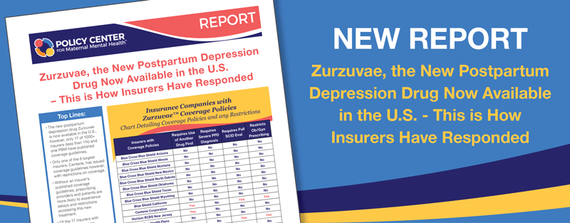 Policy Center for Maternal Mental Health. (2023, December). Zurzuvae, the New Postpartum Depression Drug Now Available in the U.S. - This is How Insurers Have Responded [Report]. https://www.2020mom.org/blog/2023/12/15/zurzuvae-the-new-postpartum-depression-drug-now-available-in-the-us-this-is-how-insurers-have-responded